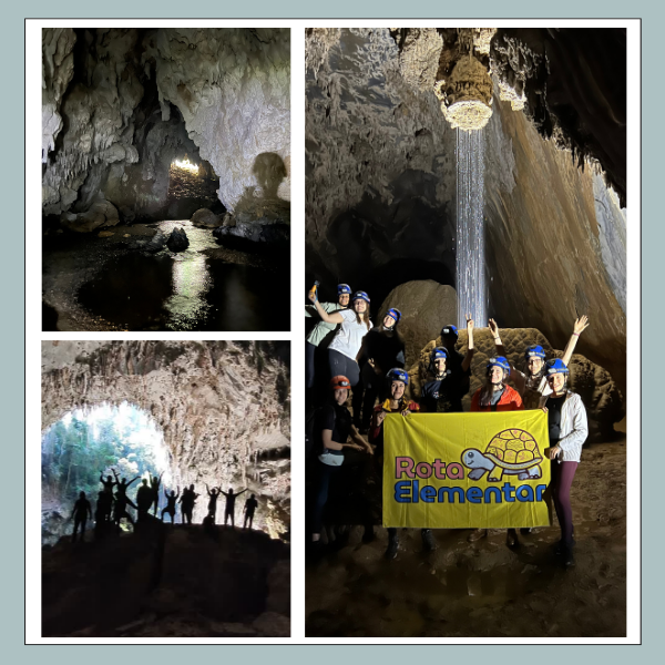 Roteiro de trilha em floresta preservada com visita à Caverna Temimina, localizada no Núcleo Caboclos. A atividade combina caminhada longa em Mata Atlântica, travessias de rio e exploração subterrânea em ambiente úmido com três grandes salões formados por dolinamento. O destaque é o chuveiro natural e a claraboia que ilumina o interior da caverna.